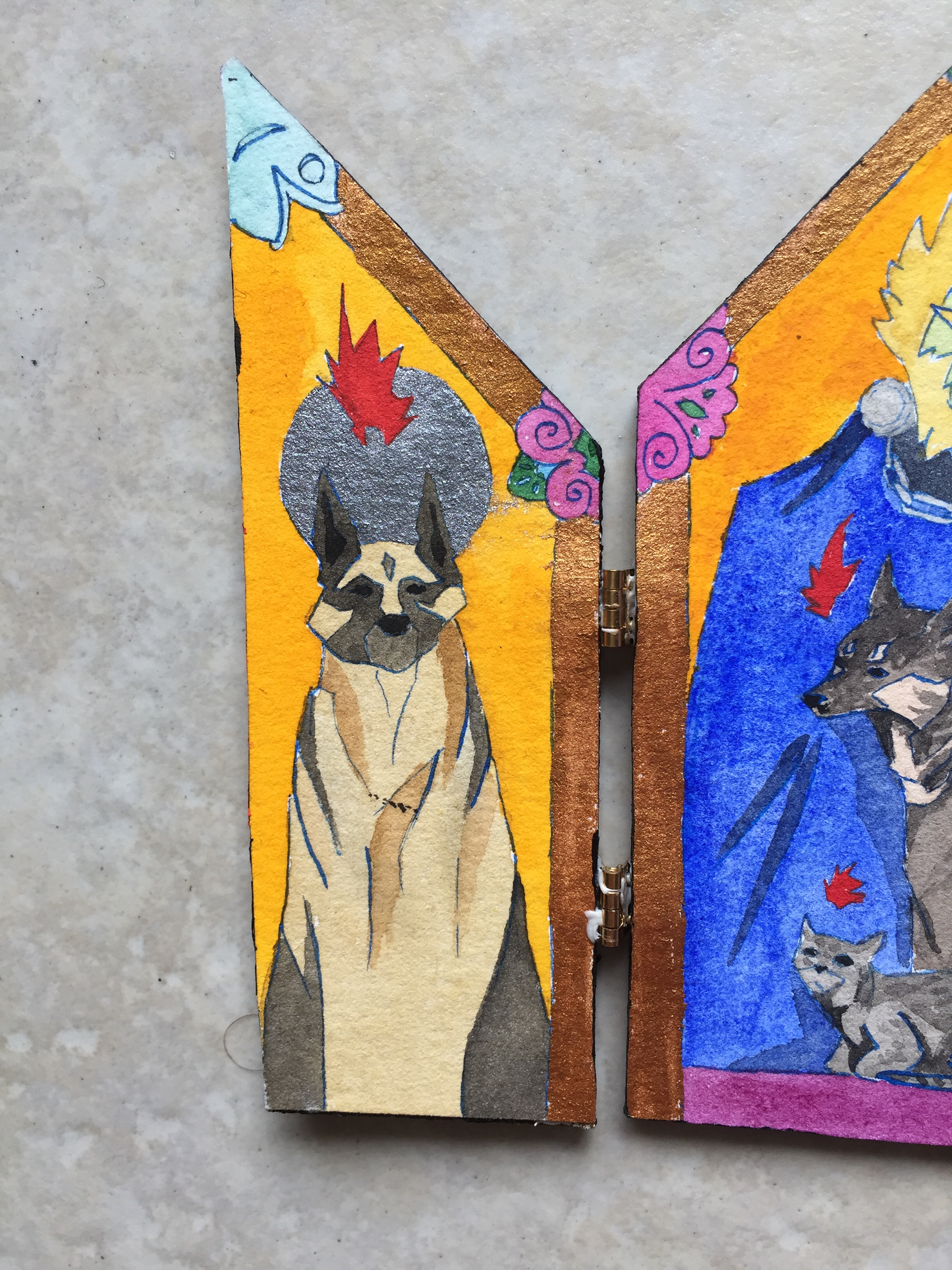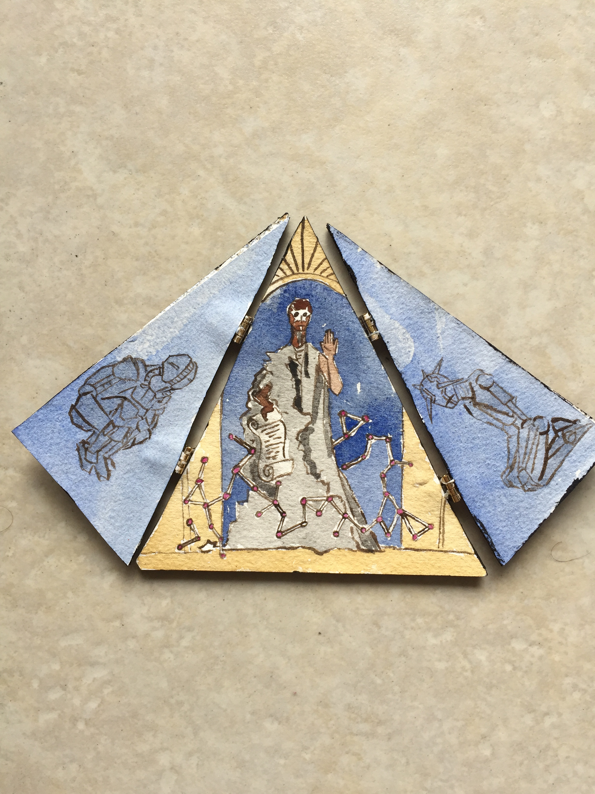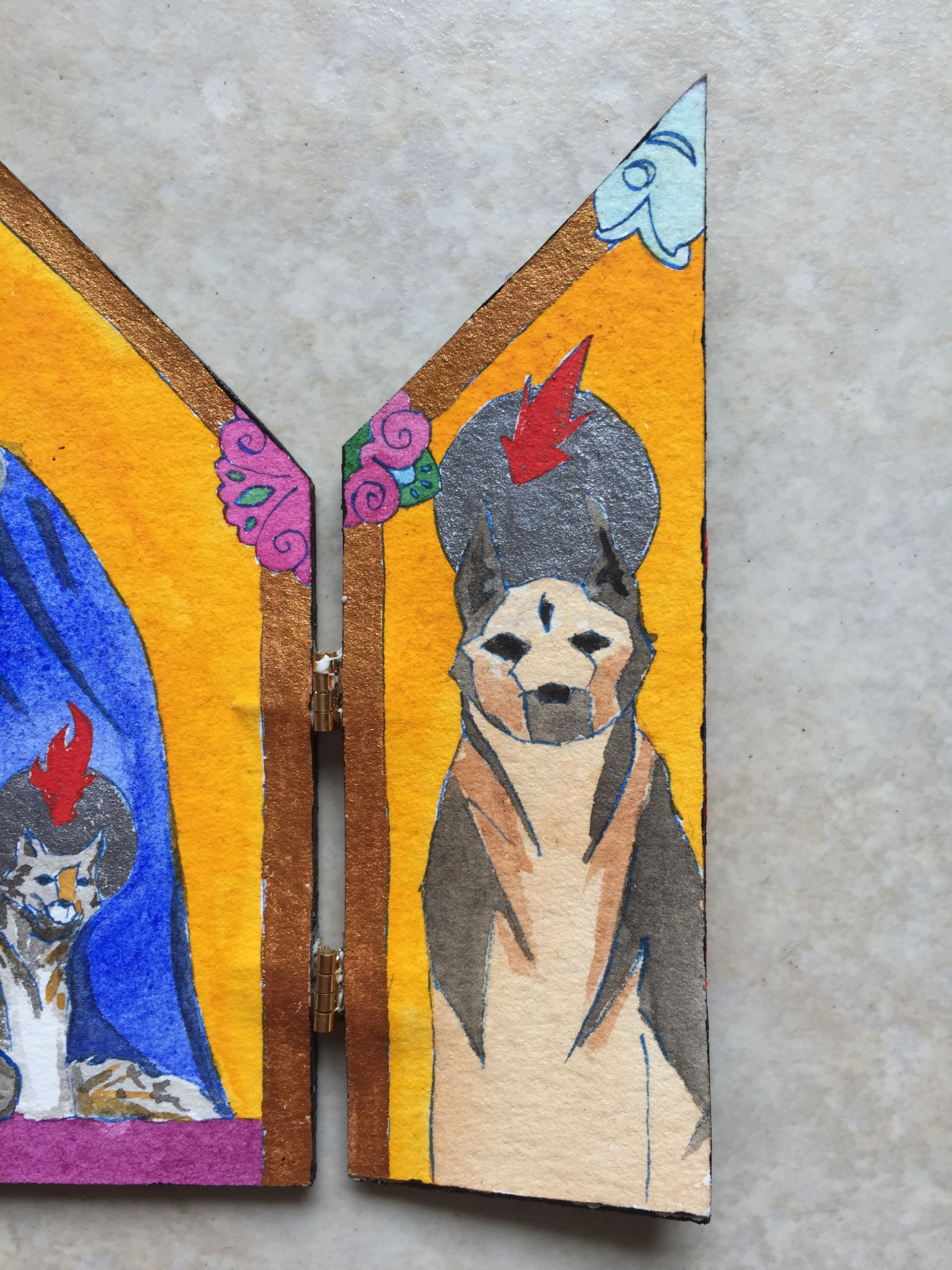 Six pocket-sized portable folding altarpieces, dedicated to various figures.