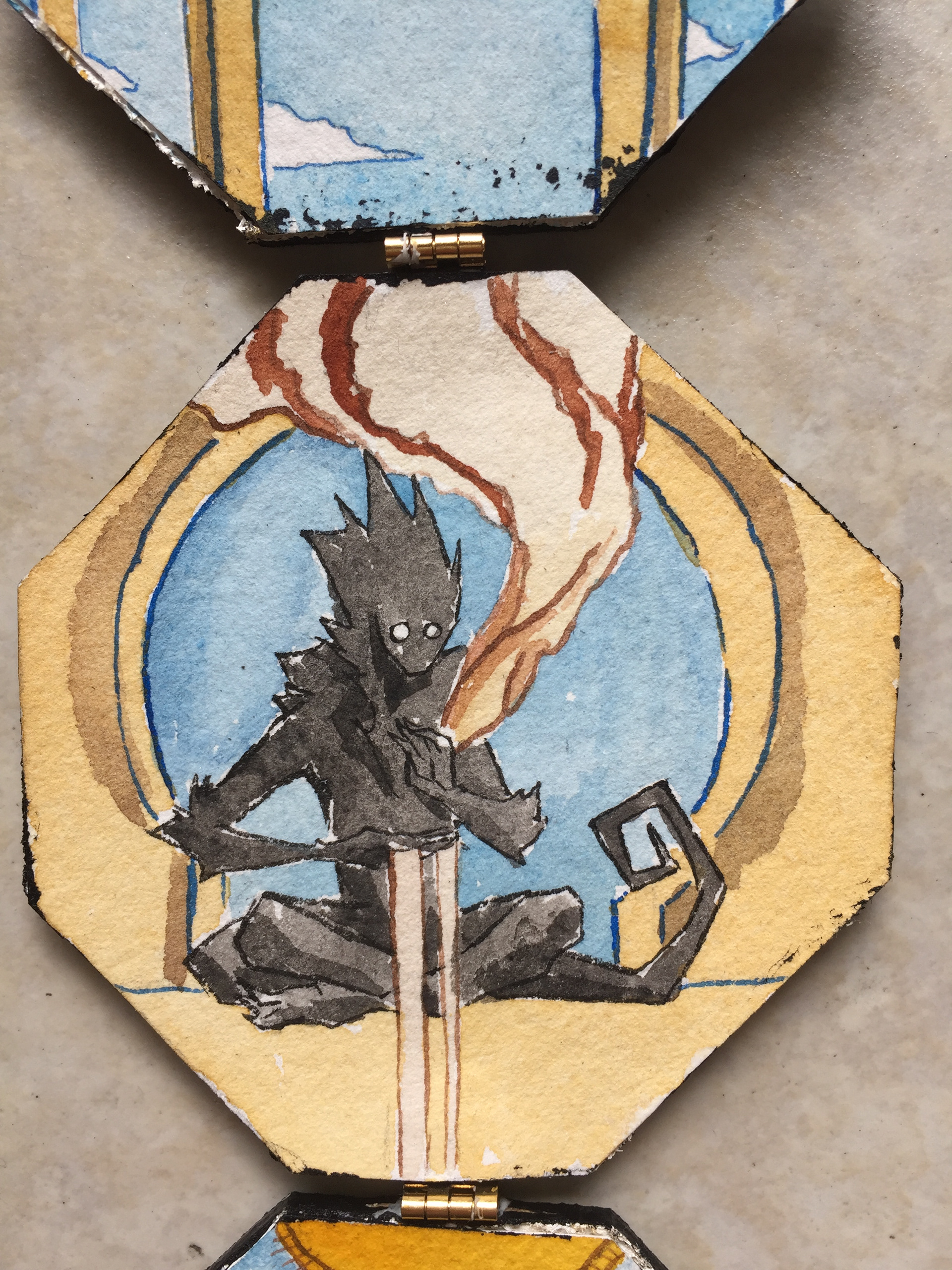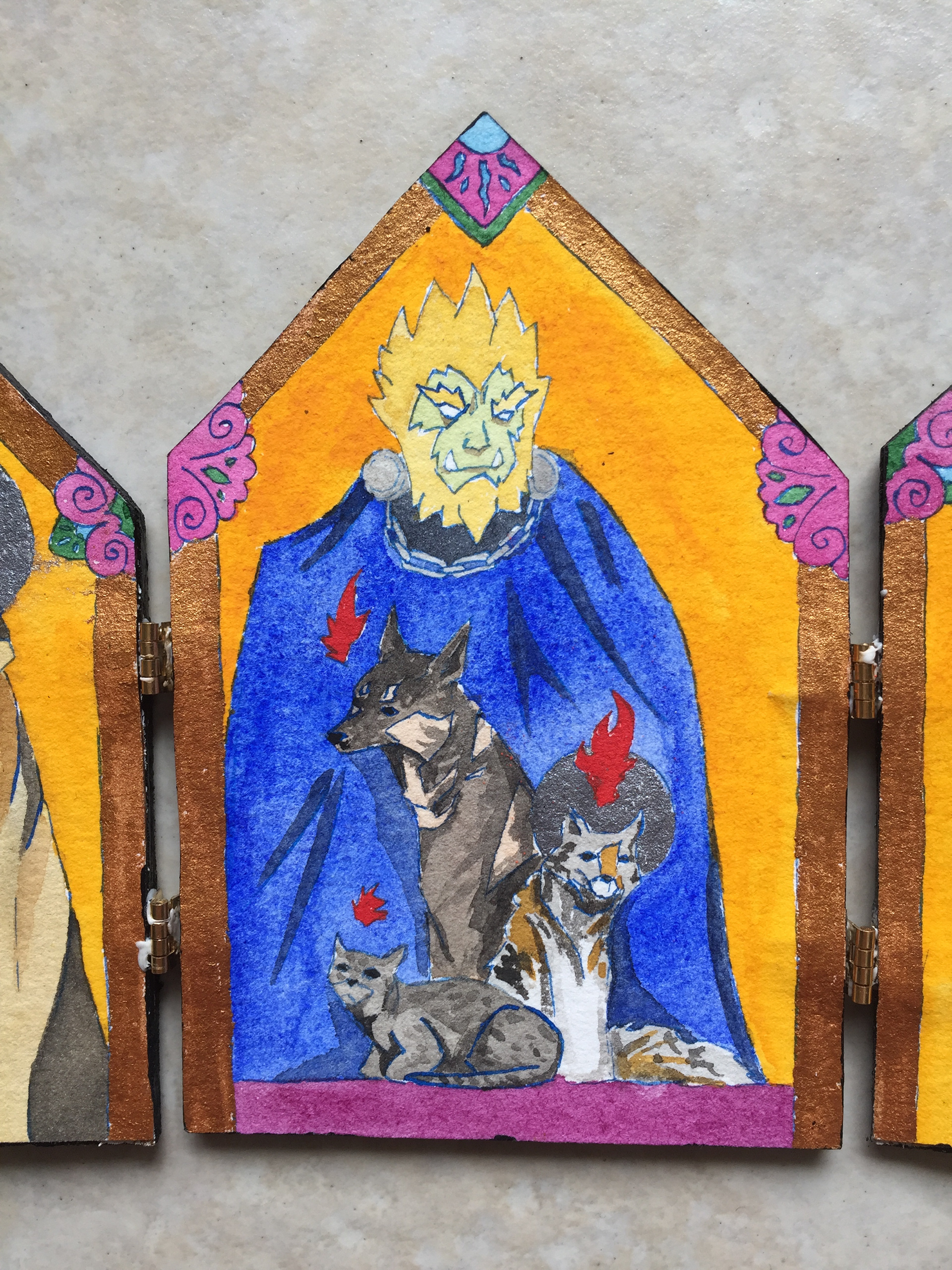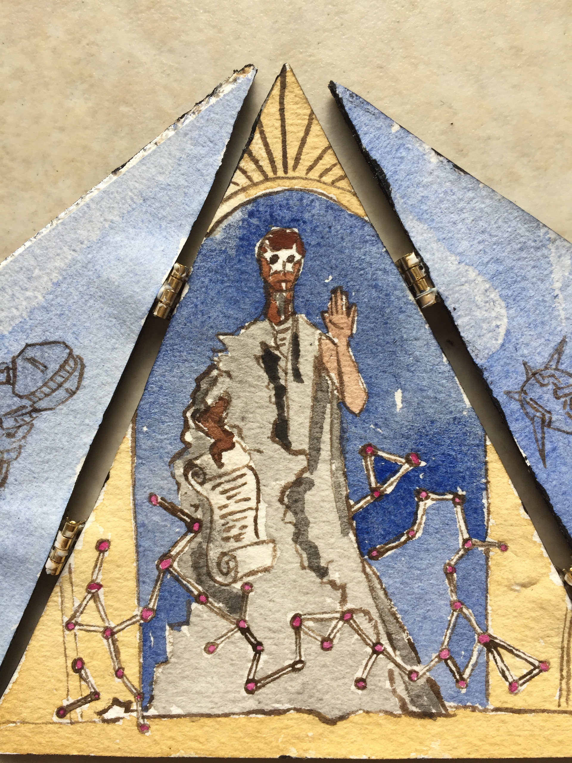 Six pocket-sized portable folding altarpieces, dedicated to various figures.