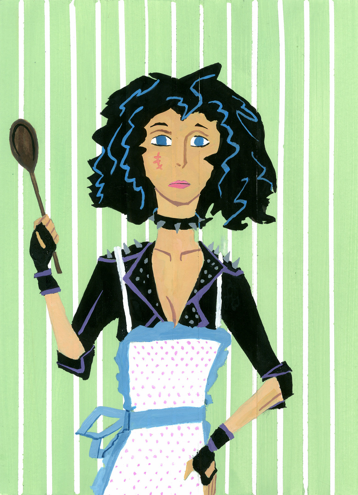 An illustration for an article titled 'The New Bad Girls,' about aggressive-appearing women dreaming of domestic life, in Jo Donna magazine.