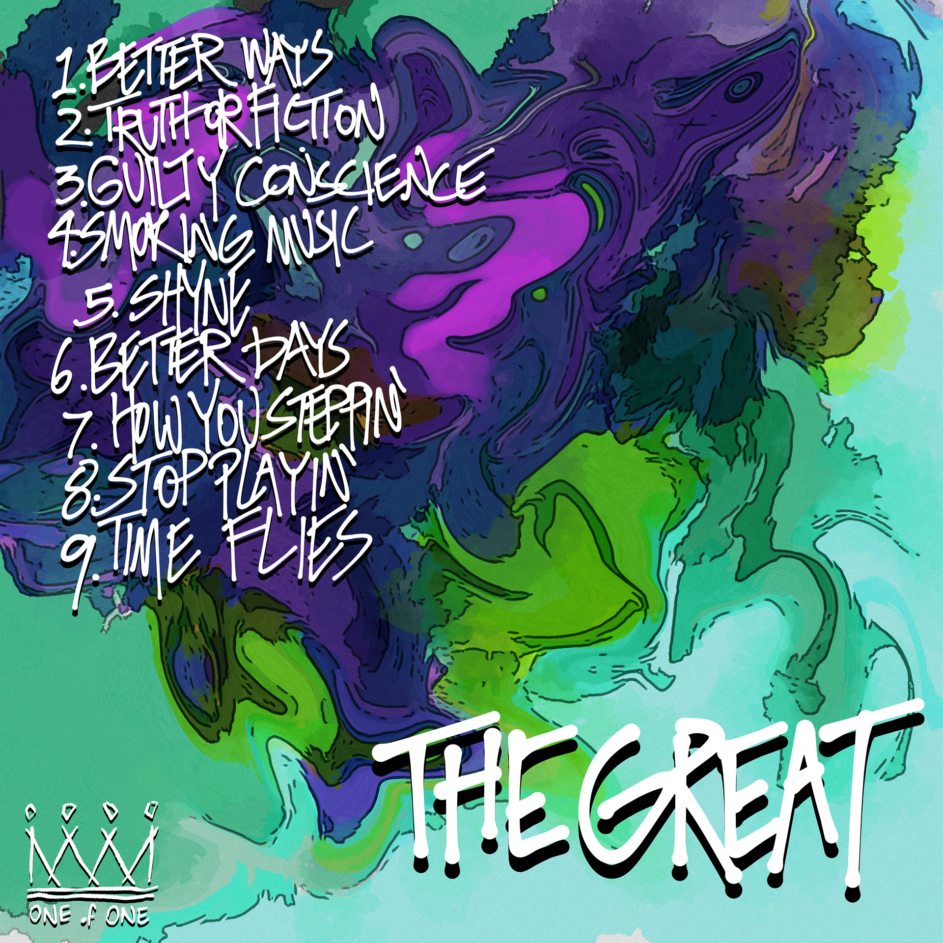 Album artwork developed for the TheGreat, Telv the Great's 2022 album, published by One of One Records. Accompanying logo developed for lable branding.